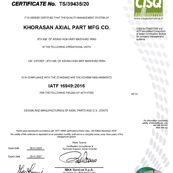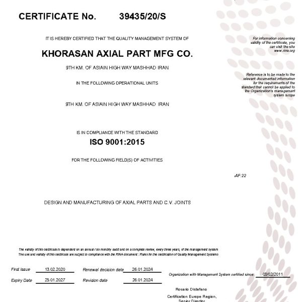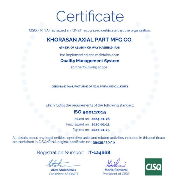 خط مشی شرکت تولیدی قطعات محوری خراسان